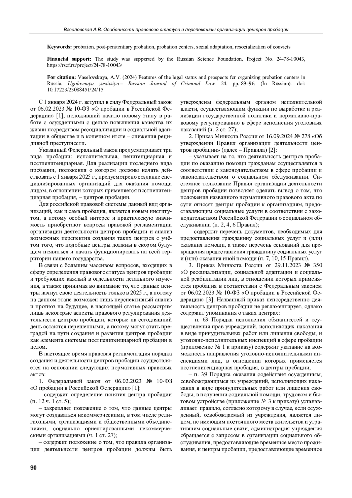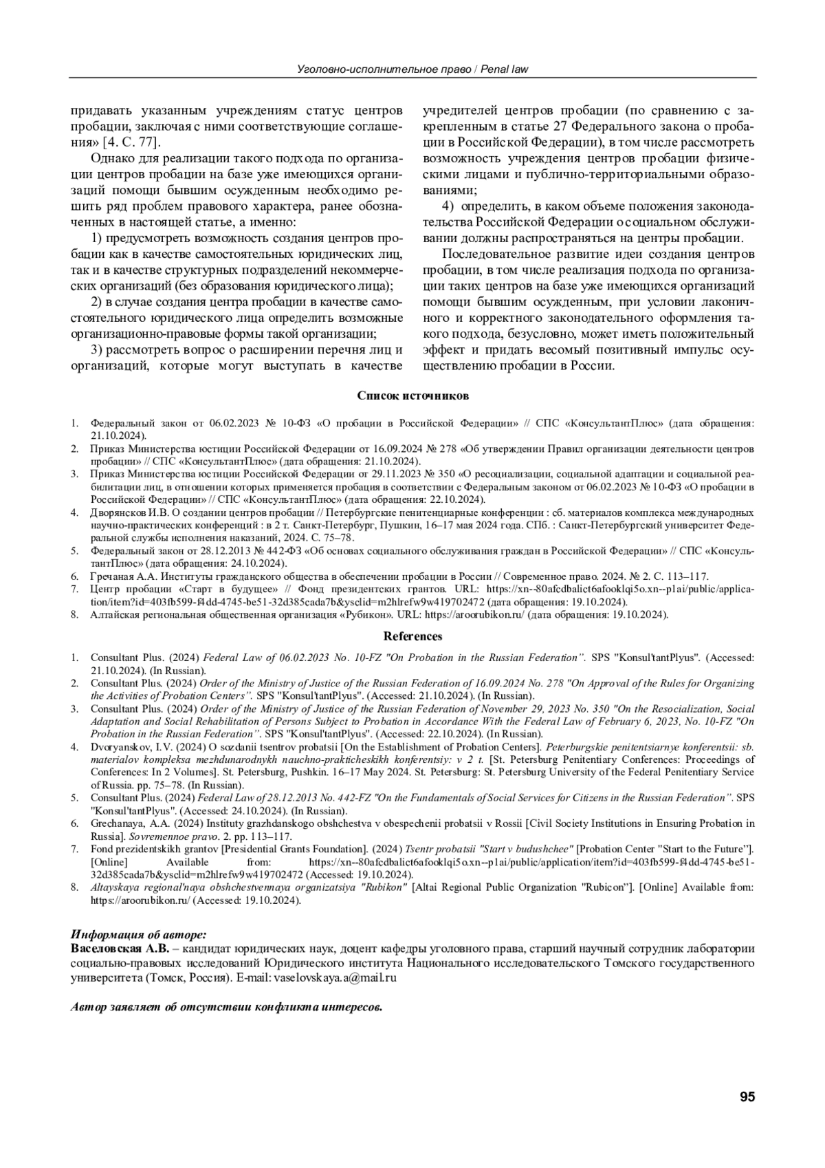 1. Федеральный закон от 06.02.2023 № 10-ФЗ “О пробации в Российской Федерации” // СПС “КонсультантПлюс” (дата обращения: 21.10.2024).