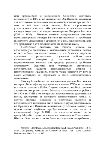 Влияние сторонников утилитаризма на процесс формирования и оправдания принципов имперской власти Британии в XIX столетии известно. Достаточно вспомнить отца и сына Миллей, занимавших высокие посты в Ост-Индской компании, колониальных администраторов типа лорда У. Бентинка, назначенного в 1827 г. генерал-губернатором Индии, или профессоров и выпускников Хэйлибери колледжа, основанного в 1806 г. по инициативе Ост-Индской компании для подготовки чиновников колониальной администрации. Все они, в той или иной степени, были сторонниками утилитаризма, считали себя учениками и последователями взглядов создателя концепции утилитаризма Джереми Бентама (1748 – 1832). Именно поэтому представляется важным проанализировать взгляды Бентама на империю и проблемы имперского управления и сравнить их с тем, как воспринимали эти проблемы те, кто объявлял себя его сторонниками.