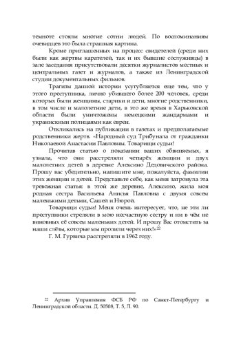 Жестокого карателя из батальона «Шелонь» Григория Моисеевича Гуревича (Гурвича), еврея по национальности, ленинградские чекисты смогли разыскать в 1960 году в Кировской области. Суд над ним и его подельником Николаем Ивановым прошел в Новгороде в 1961 году. Однако многие из своих преступлений он совершил на территории современной Псковской области.