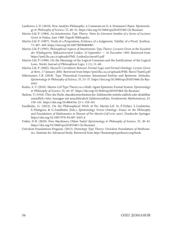 22. Martin-Löf, P. (1987). Truth of a Proposition, Evidence of a Judgement, Validity of a Proof. Synthese, 73, 407-420. DOI: 10.1007/BF00484985 EDN: LRCQWX
