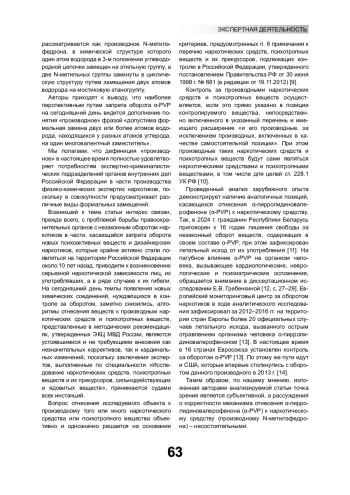 На основе результатов научных исследований, материалов экспертной практики, зарубежного опыта рассматривается вопрос возможности отнесения α-пирролидиновалерофенона (α-PVP) к наркотическому средству.