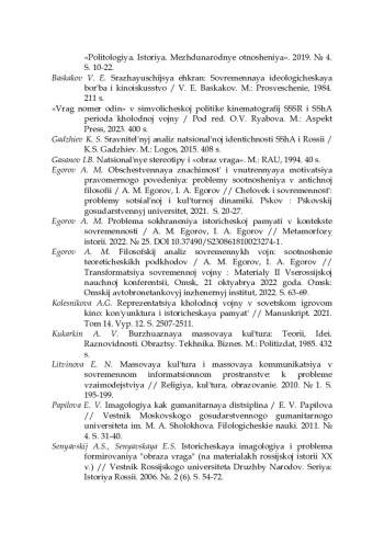 7. Враг номер один“ в символической политике кинематографий СССР и США периода холодной войны / Под ред. О.В. Рябова. М.: Аспект Пресс, 2023.