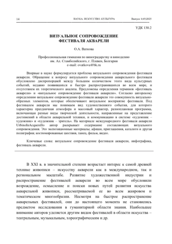 Предложены определения терминов «фестиваль акварели» и «визуальное сопровождение фестиваля акварели».