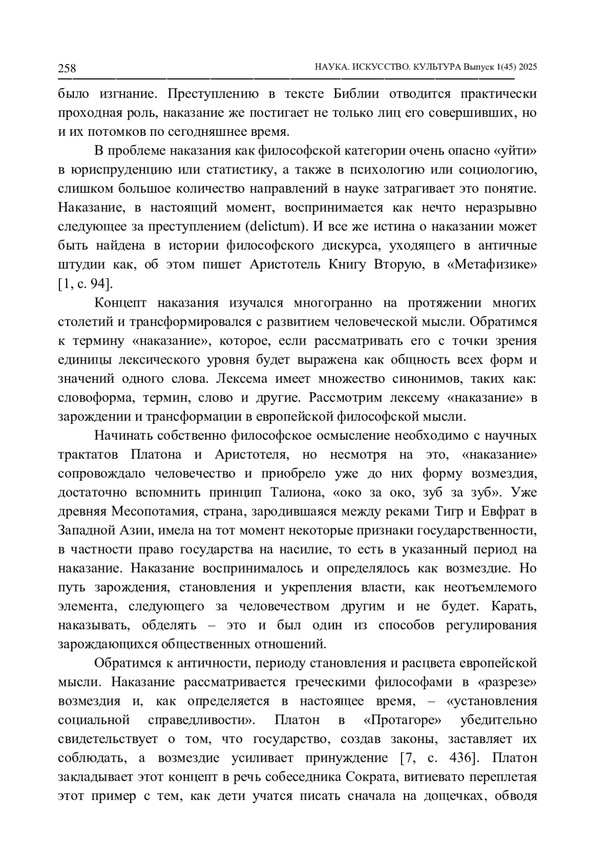 3. Борисов, С. Н. Наказание как философский концепт. Проблема ускользающих контекстов / С. Н. Борисов, А. С. Горяинова // Вестник Московского государственного университета культуры и искусств. - 2019. - № 1 (87). - С. 37-44. EDN: ZZOKHL