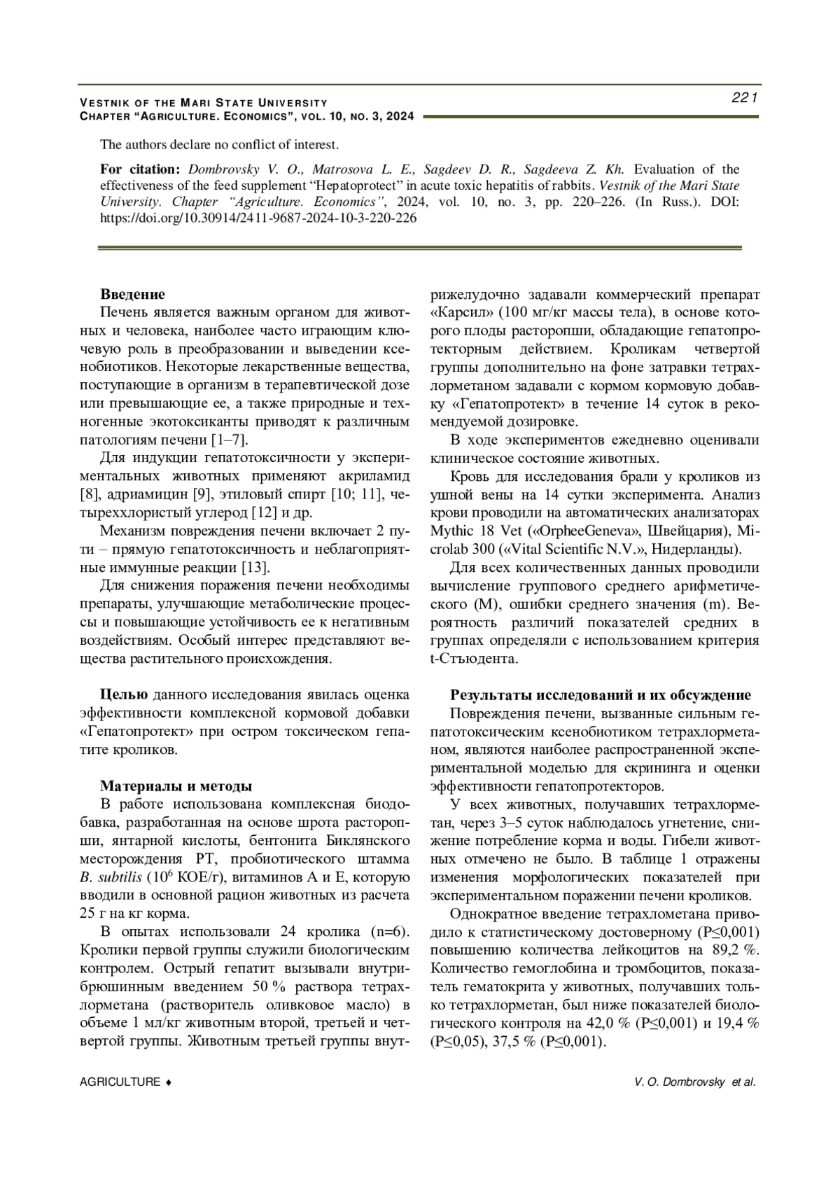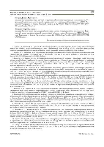3. Применение эссенциальных элементов, метионина и альфасорба при анемии животных, индуцированной кадмием / С. Н. Потапова, И. Р. Кадиков [и др.] // Вестник Марийского государственного университета. Серия “Сельскохозяйственные науки. Экономические науки”. 2024. Т. 10. № 1. С. 27-35. DOI: 10.30914/2411-9687-2024-10-1-27-35 EDN: BHBUMU