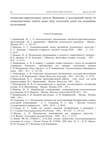 5. Лимитовская, А. В. Символизм музыкальных инструментов: культурно-философские смыслы / А. В. Лимитовская // Наука. Искусство. Культура. - 2023. - № 2 (28). - С. 47-56. EDN: XVPNPD