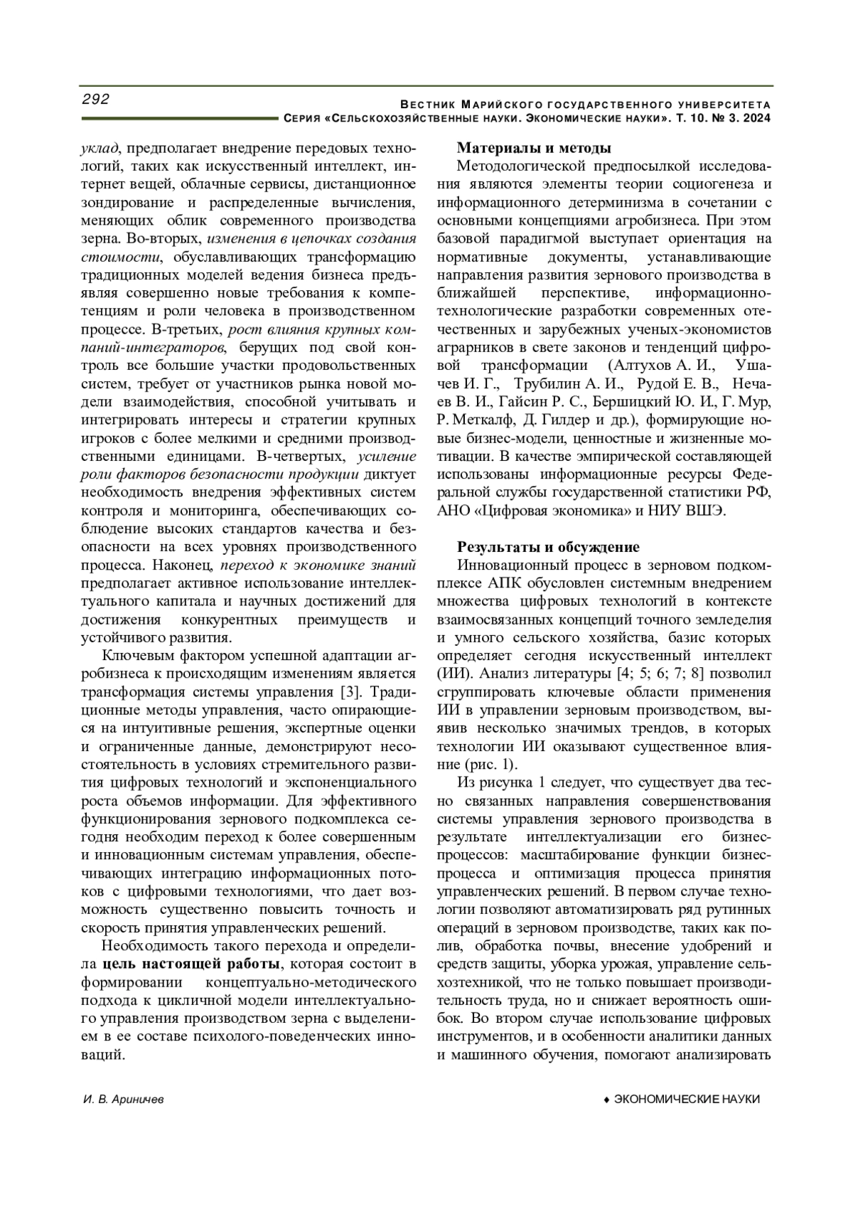 6. Ариничев И. В., Сидоров В. А. Инновационное развитие АПК: цифровые технологии в управлении бизнес-процессами производства зерна // Вестник Курской ГСХА. 2024. № 1. С. 187-192. EDN: BGRZJF