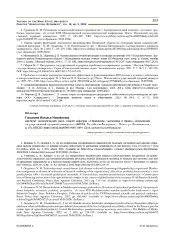 4. Гурьянова Н. М. Размещение сельскохозяйственного производства // Агропромышленный комплекс: состояние, проблемы, перспективы: сб. статей XVII Международной научно-практической конференции. Пенза: Пензенский государственный аграрный университет. 2022. С. 683-685. URL: item.asp?id=49807044&ysclid=m2i rgglw3b380291225 (дата обращения: 10.09.2024). EDN: LTKYDW