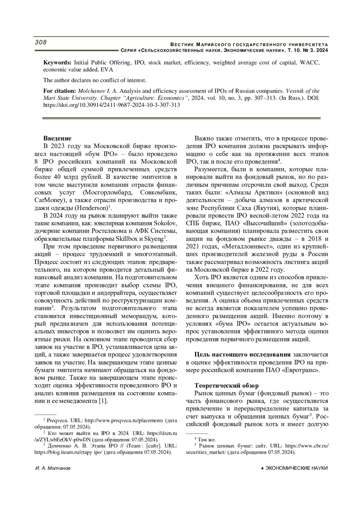 2. Горовой А. А., Федько Т. С. Проблемы малого количества IPO в России // Вестник Академии знаний. 2023. № 2 (55). С. 307-312. URL: https://cyberleninka.ru/article/n/problemy-malogo-kolichestva-ipo-v-rossii?ysclid=m24f95h0np433192255 (дата обращения: 11.05.2024). EDN: SOGVLY