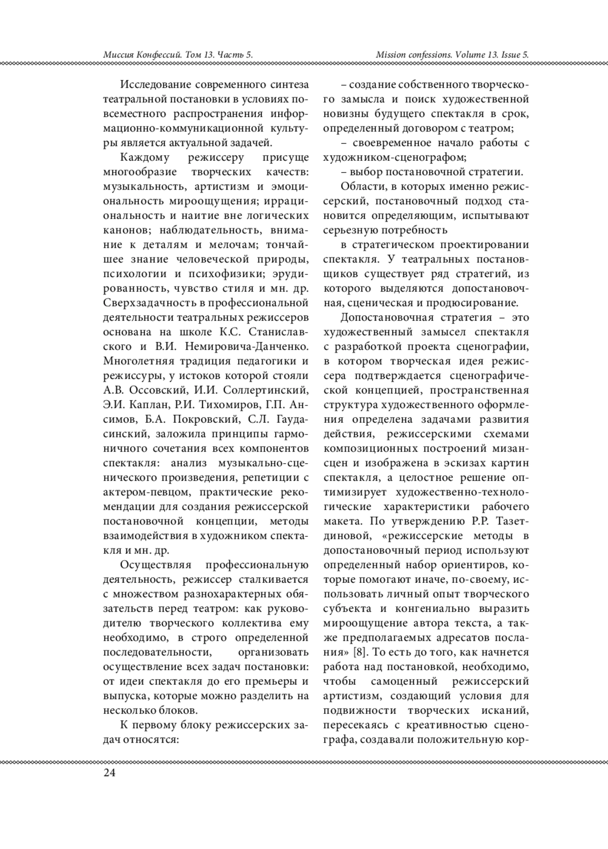 8. Тазетдинова Р.Р. Философско-культурологический аспект режиссерского анализа художественного текста: дис. на соиск. уч. ст. канд. философских наук. // URL: https://www.dissercat.com/content/filosofsko-kulturologicheskiiaspekt-rezhisserskogo-analiza-khudozhestvennogo-teksta (Дата обращения: 25.06.2024).