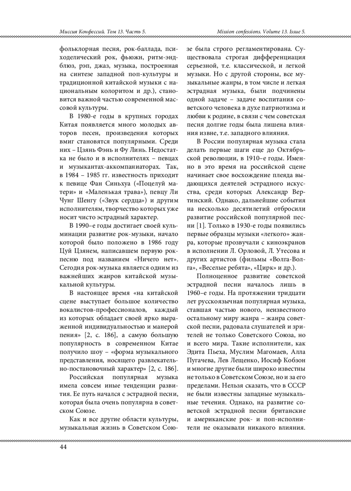 8. Chen Xing. The Present Situation and Development of Pop Music // Art and Performance Letters. 2021. № 2. Р. 131-135.