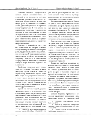 3. Волович Л.С. Социально-психологические аспекты доверия в браке // Вестник МГУ, серия 18: Психология. 2018. № 2. С. 29-41.