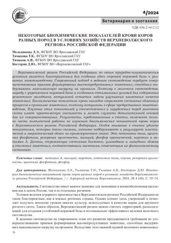 7. Тимаков А.В., Тимакова Т.К., Мельникова Л.Э. Биохимические показатели крови разных пород // Вестник АПК Верхневолжья. 2014. № 2.