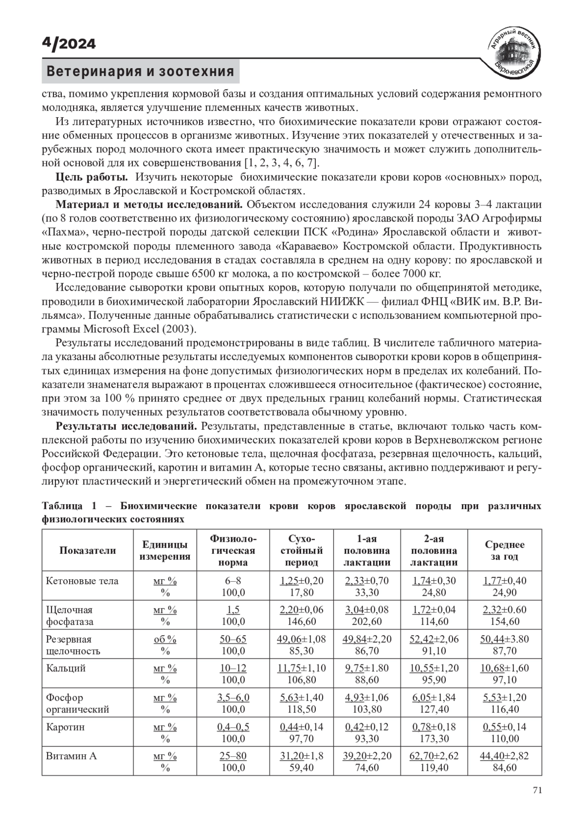 2. Ермишин А.С., Тимаков А.В. Сравнительная оценка ветеринарно-зоотехнических показателей и биохимического состава крови у коров голштинской и ярославской пород // Проблемы биологии продуктивных животных. 2015. № 4. С. 52-60. EDN: UYNHUZ