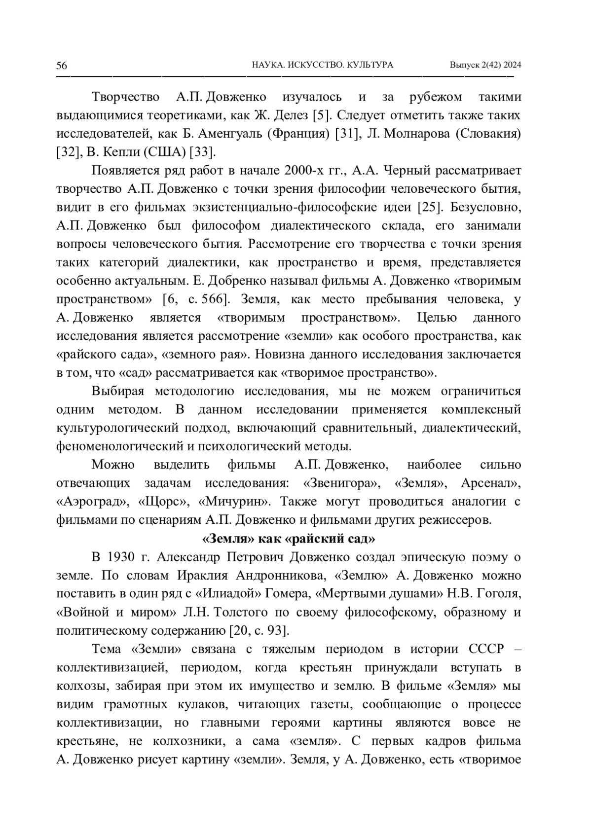 25. Чёрный, А. А. Философская картина мира А. Довженка, как художественное отражение человеческого бытия / А. А. Чёрный // Филология: научные исследования. - 2013. - № 3. - C. 242-247. EDN: RSRSTP