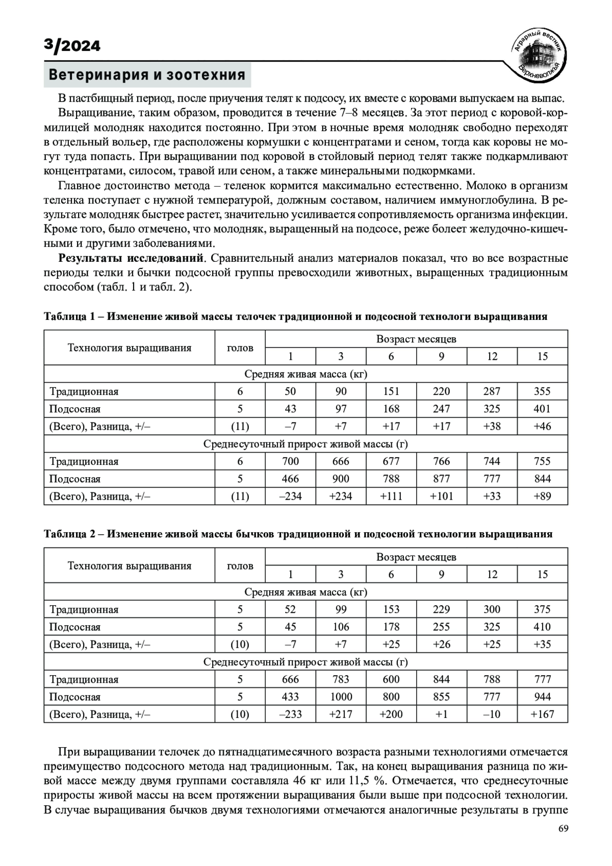 Статья: ИСПОЛЬЗОВАНИЕ РАЗЛИЧНЫХ ТЕХНОЛОГИЧЕСКИХ ПРИЕМОВ ВЫРАЩИВАНИЯ МОЛОДНЯКА В УСЛОВИЯХ МАЛЫХ ПРЕДПРИЯТИЙ (2024)