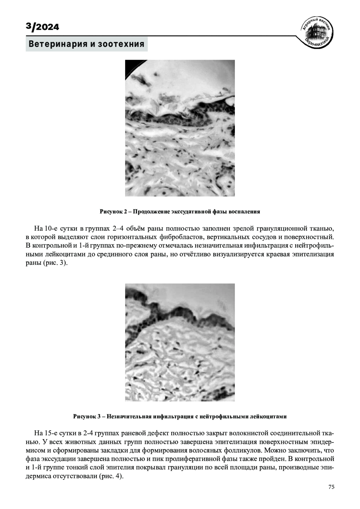 Для лечения кожных ран на данный момент существует определённое количество препаратов, но многие из них не дают должного эффекта при лечении или экономически не рентабельны, особенно при длительно заживающих ранах. Поэтому актуальной становится необходимость разработки препаратов или лечебных материалов, которые могут быть использованы как при острых, так и при хронических ранах. Если процесс заживления прерывается, ткань не может адекватно восстановить свои функции и возникают хронические раны. Хронические раны представляют собой вялотекущий процесс, который обязательно необходимо купировать и лечить. Это привело к необходимости разработки экономически эффективных повязок для ран, способных создавать и предотвращать влажную раневую среду, предотвращать вторичную инфекцию, имеющую высокую адгезию к поврежденной ткани и способствовать регенерации тканей. Для удовлетворения этих потребностей были разработаны различные типы современных повязок для ран, но в настоящее время не существует единого продукта, который мог бы универсально удовлетворить все потребности и считаться идеальным для ухода за ранами. Для своих исследований мы выбрали природный полимер хитозан (Cs), который имеет ряд уникальных свойств. В настоящем исследовании оценивалось влияние растворов на основе плазмомодифицированного хитозана с разной концентрацией на уменьшение воспаления, вызванного сформированными нами эксцизионными ранами.