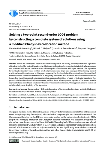 7. Lovetskiy, K. P., Kulyabov, D. S., Sevastianov, L. A. & Sergeev, S. V. Chebyshev collocation method for solving second order ODEs using integration matrices. Discrete and Continuous Models and Applied Computational Science 31, 150–163. doi:10.22363/2658-4670-2023-31-2-150-163 (2023).