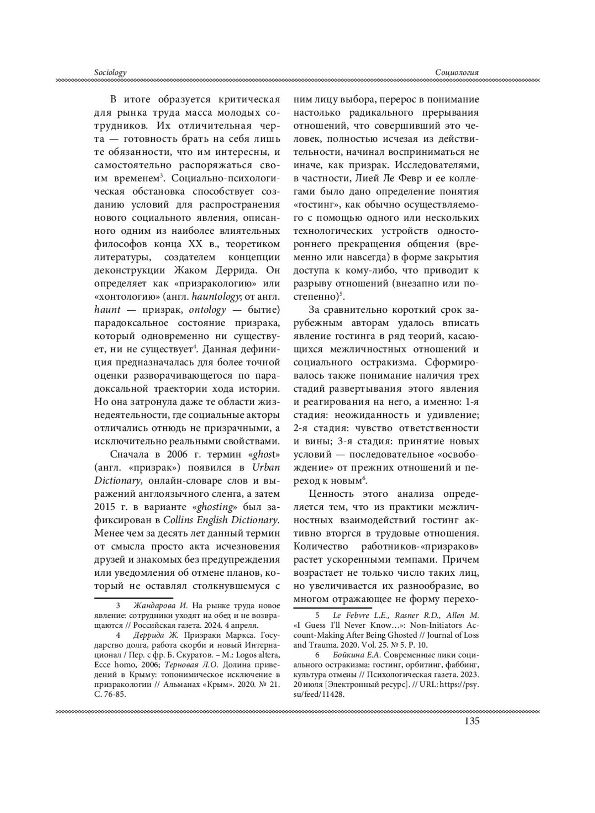 В статье анализируется новое социальное явление, возникшее в межличностных отношениях, но очень быстро перешедшее в сферу трудовых отношений. гостинг является порождением одновременно процессов изменений в трудовой сфере, в частности на рынке труда, а также трансформаций, связанных с ценностным миром поколений Y и Z. В статье дана характеристика стадий трудовых отношений, на которых особенно часто проявляется гостинг. Выделяются параметры, делающие это явление социально опасным: психологические, организационные и темпоральные.