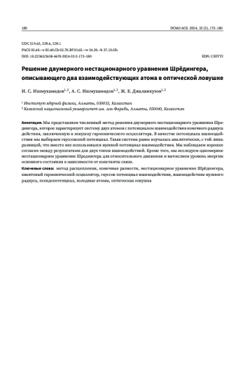 18. Ishmukhamedov, I. S. Quench dynamics of two interacting atoms in a one-dimensional anharmonic trap. Physica E 142, 115228 (2022).