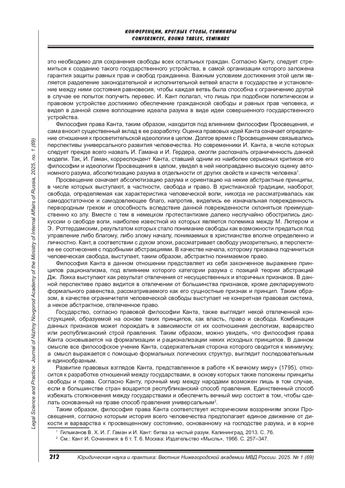 - Кабышев С. В. Формула российского юридического образования // Юридическая наука и практика: Вестник Нижегородской академии МВД России. 2023. № 3 (63). С. 113, 117. Кант И. Сочинения: в 6 т. Т. 4. Ч. 2. Москва: Издательство «Мысль», 1965. С. 138