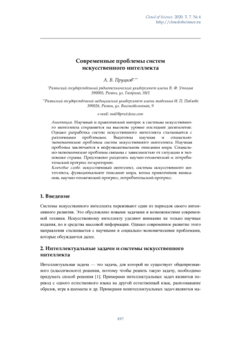 Системы искусственного интеллекта переживают один из периодов своего интенсивного развития. Это обусловлено новыми задачами и возможностями современной техники. Искусственному интеллекту уделяют внимание не только научные издания, но и средства массовой информации. Однако современное развитие этого направления сталкивается с научными и социально-экономическими проблемами, которые обсуждаются далее.