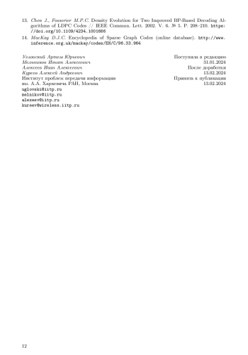 Ключевые фразы: коды с малой плотностью проверок (мпп-коды), тупиковые множества, выборка по значимости, низкий уровень ошибок
