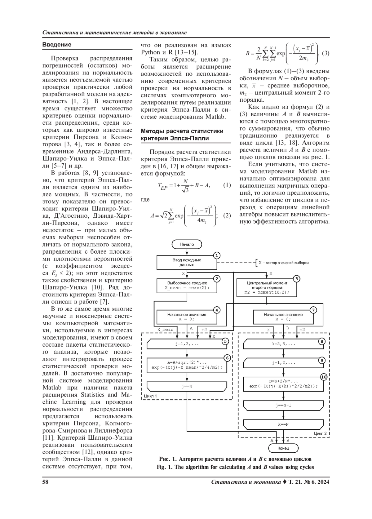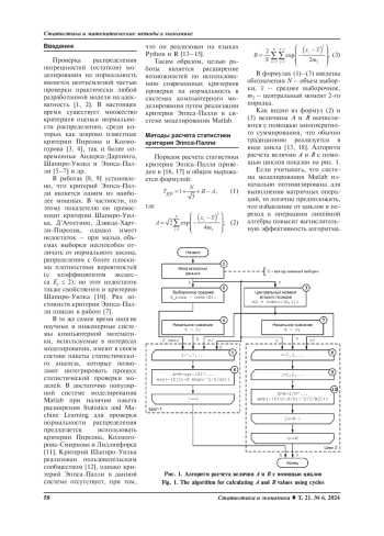 Проверка распределения погрешностей (остатков) моделирования на нормальность является неотъемлемой частью проверки практически любой разработанной модели на адекватность [1, 2]. В настоящее время существует множество критериев оценки нормальности распределения, среди которых как широко известные критерии Пирсона и Колмогорова [3, 4], так и более современные Андерса-Дарлинга, Шапиро-Уилка и Эппса-Палли [5–7] и др.