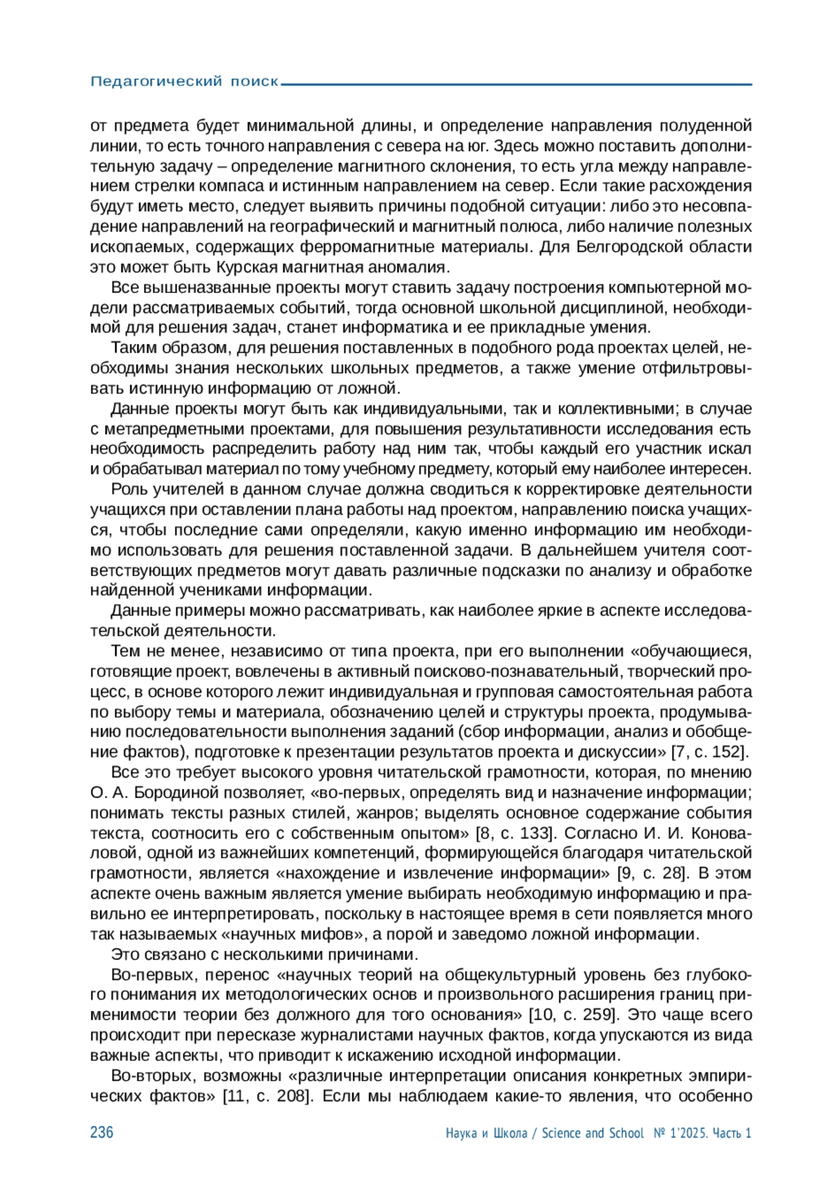 9. Коновалова И. И. Проектная деятельность краеведческой направленности - средство формирования читательской грамотности // Источник. 2022. № 4 (116). С. 28-29.
