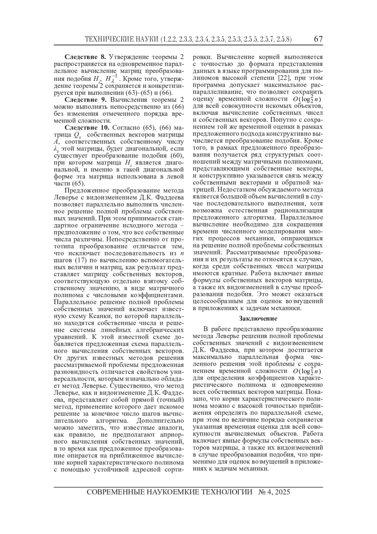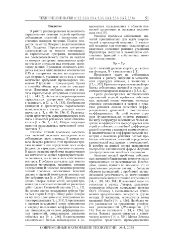 Статья: О ПАРАЛЛЕЛЬНОМ ВЫЧИСЛЕНИИ СОБСТВЕННЫХ ВЕКТОРОВ НА ОСНОВЕ МЕТОДА ЛЕВЕРЬЕ С ВИДОИЗМЕНЕНИЕМ Д. К. ФАДДЕЕВА (2025)