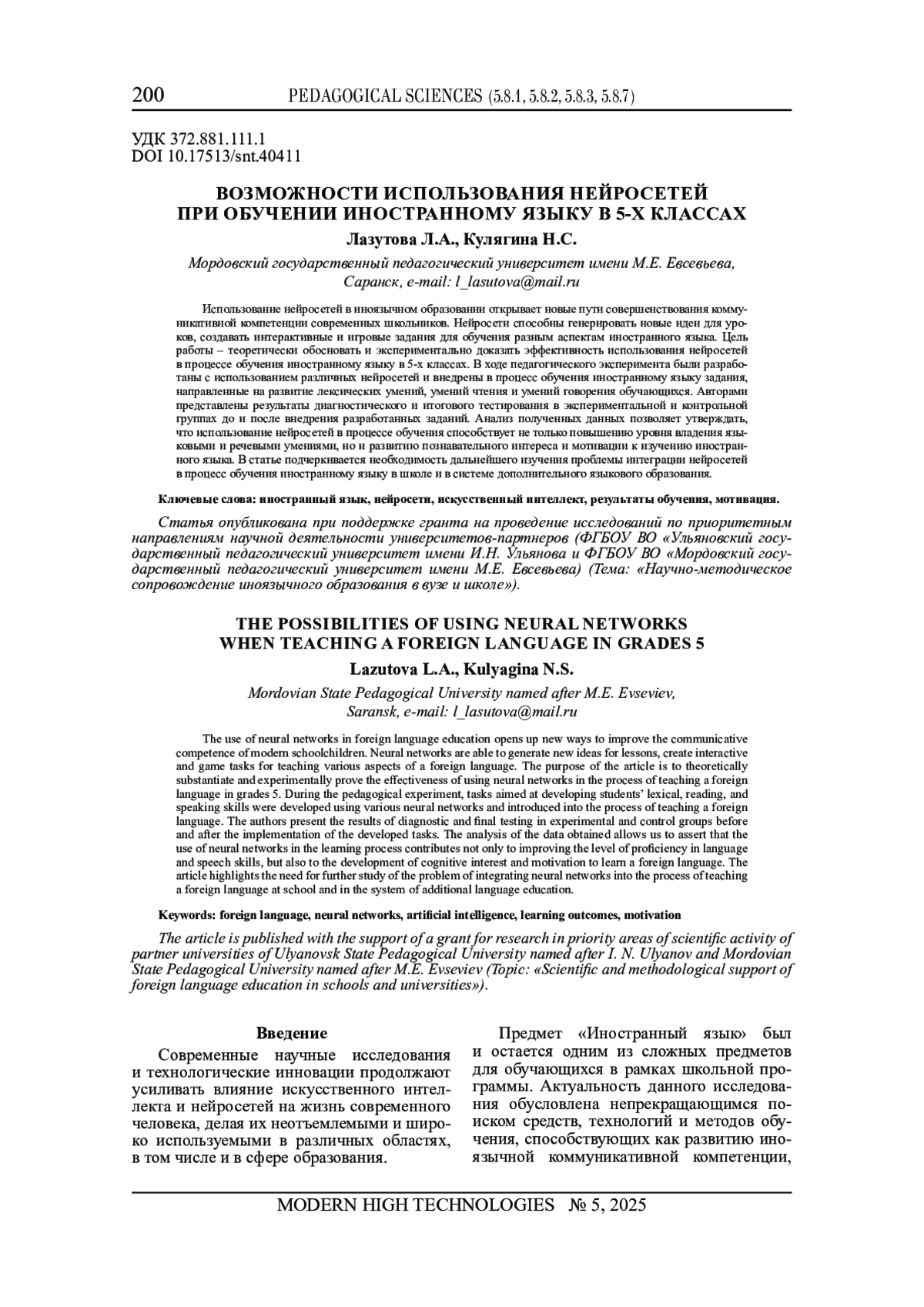 13. Лазутова Л.А. Развитие коммуникативных умений обучающихся 10-х классов на уроке иностранного языка с использованием российских цифровых ресурсов “ЯКласс” и “УДОБА” // Современные наукоемкие технологии. 2024. № 5. URL: https://top-technologies.ru/ru/article/view?id=40022 (дата обращения: 15.04.2025). DOI: 10.17513/snt.40022 EDN: NYNDTT