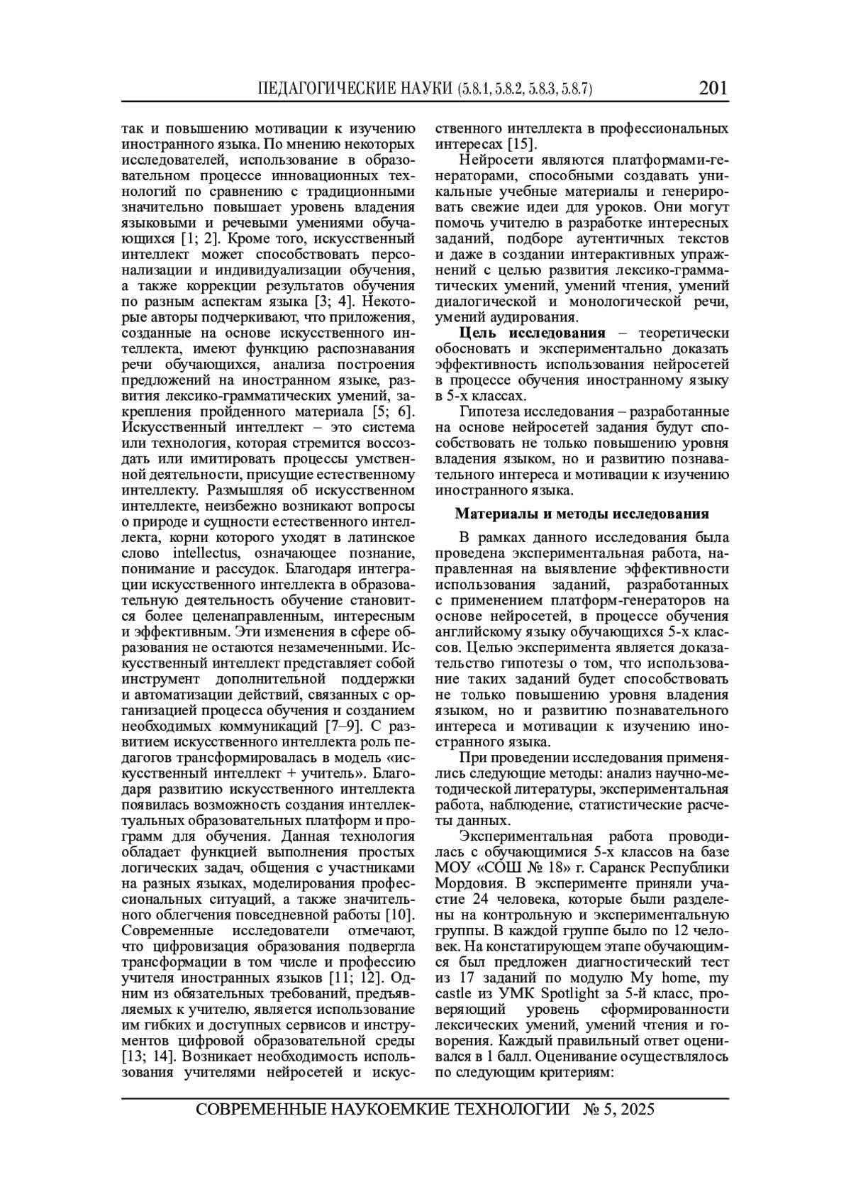 6. Шефиев Э.Ш., Исаева Т.Е. Использование искусственного интеллекта в образовательном процессе высших учебных заведений (на примере обучения иностранным языкам) // Общество: социология, психология, педагогика. 2020. № 10. С. 84-89. DOI: 10.24158/spp.2020.10.15 EDN: OIJXCU