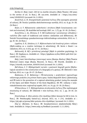 17. Закс, Л. История в зеркале театрального мифа [Электронный ресурс] // Петербургский театральный журнал. - 2023. - № 4 (114). - Режим доступа: https://ptj.spb.ru/archive/114/process-114/istoriya-v-zerkale-teatralnogo-mifa/ (дата обращения: 04.11.2024).