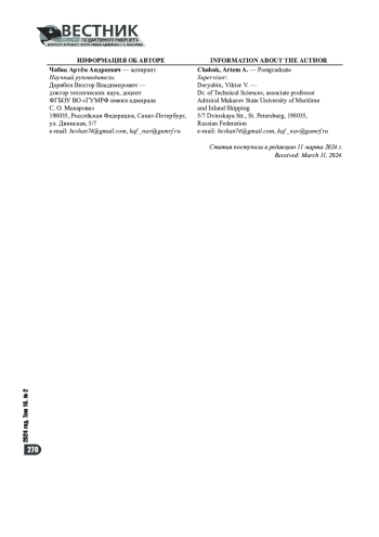2. Триполец О. Ю. Обзор существующих методов расхождения безэкипажных судов / О. Ю. Триполец // Вестник Государственного университета морского и речного флота имени адмирала С. О. Макарова. - 2021. - Т. 13. - № 4. - С. 480-495. DOI: 10.21821/2309-5180-2021-13-4-480-495 EDN: OTCNOC