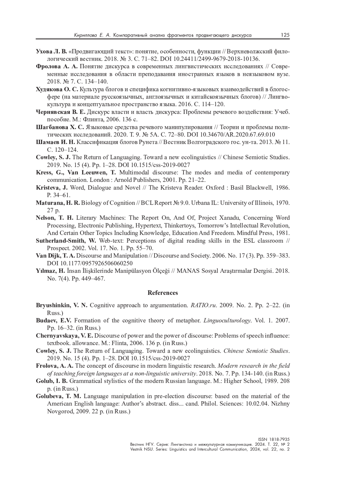 13. Фролова А. А. Понятие дискурса в современных лингвистических исследованиях // Современные исследования в области преподавания иностранных языков в неязыковом вузе. 2018. № 7. С. 134-140.