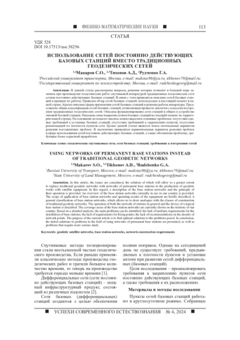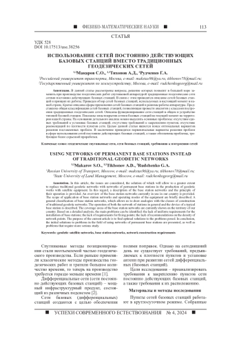 Статья: ИСПОЛЬЗОВАНИЕ СЕТЕЙ ПОСТОЯННО ДЕЙСТВУЮЩИХ БАЗОВЫХ СТАНЦИЙ ВМЕСТО ТРАДИЦИОННЫХ ГЕОДЕЗИЧЕСКИХ СЕТЕЙ (2024)