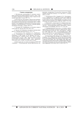 Ключевые фразы: мониторинговые исследования, государственный природный резерват "акжайык", ИХТИОФАУНА, ЗООБЕНТОС, растительность, животный мир