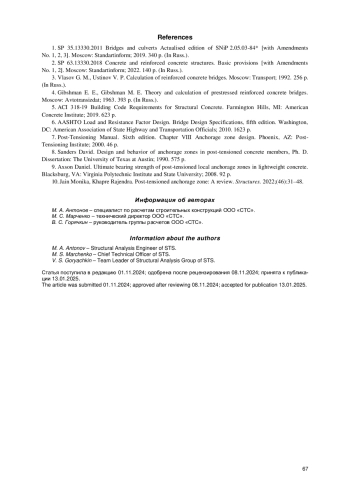 10. Jain Monika, Khapre Rajendra. Post-tensioned anchorage zone: A review // Structures. 2022. No. 46. P. 31-48. EDN: MZEQDL