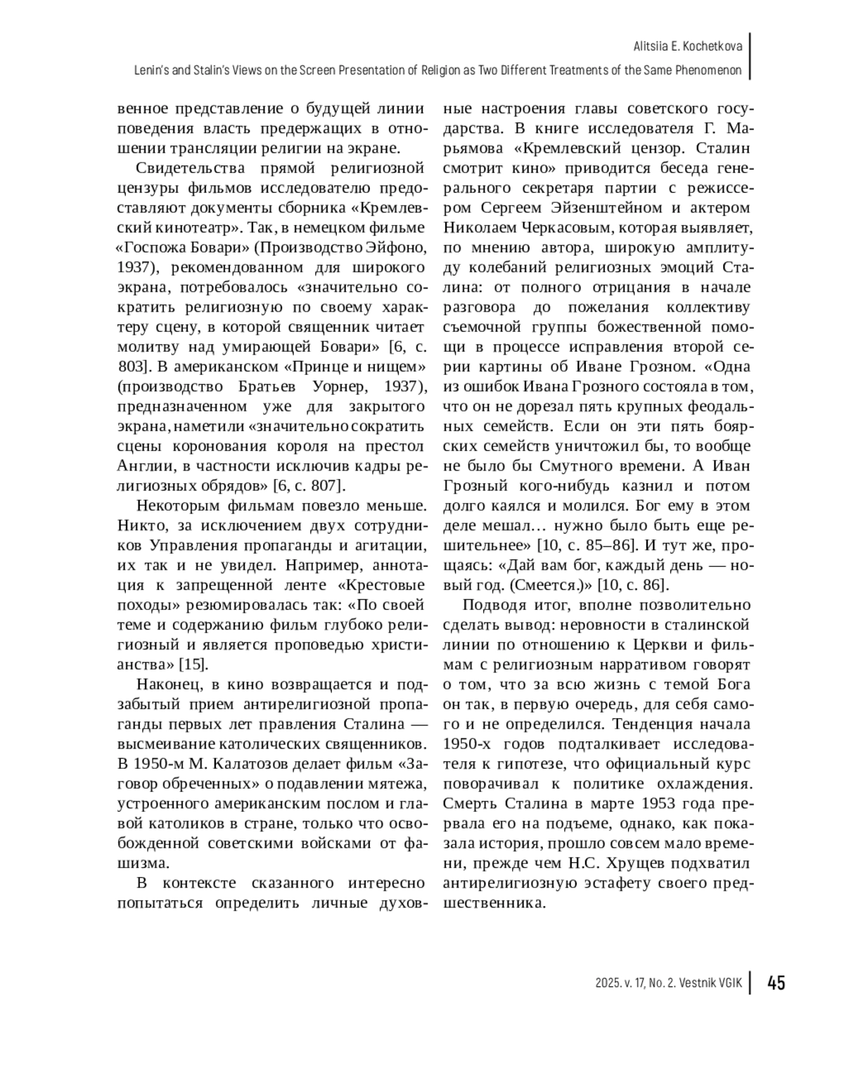 В отличие от ленинского, пусть и весьма жесткого, но все же однозначно последовательного отношения к демонстрации религии на экране, сталинская тактика на тот же предмет отличалась большой многоликостью. На то есть сразу несколько причин. Две из них, по мнению автора, являются основными.