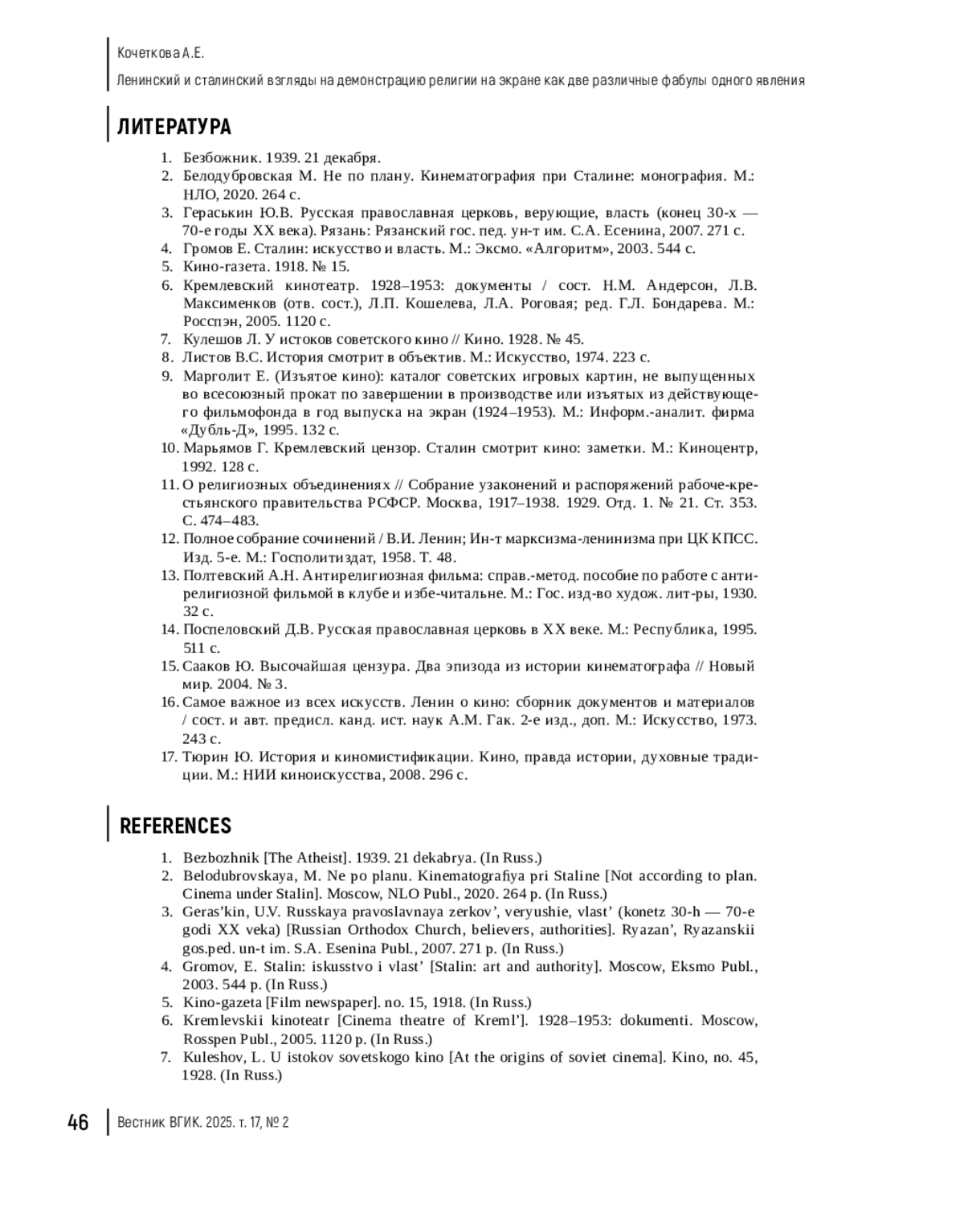 2. Белодубровская М. Не по плану. Кинематография при Сталине: монография. М.: НЛО, 2020. 264 с.