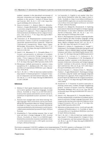 11. Smyth A. M., Manzanares N. G., Fernandez-Munoz J. J. Anxiety and personality as indicators of academic performance in university Foreign Language classrooms // Porta Linguarum Revista Interuniversitaria de Didáctica de las Lenguas Extranjeras. 2021. № 36. P. 27-42. DOI: 10.30827/portalin.v0i36.15376 EDN: UFLKDD