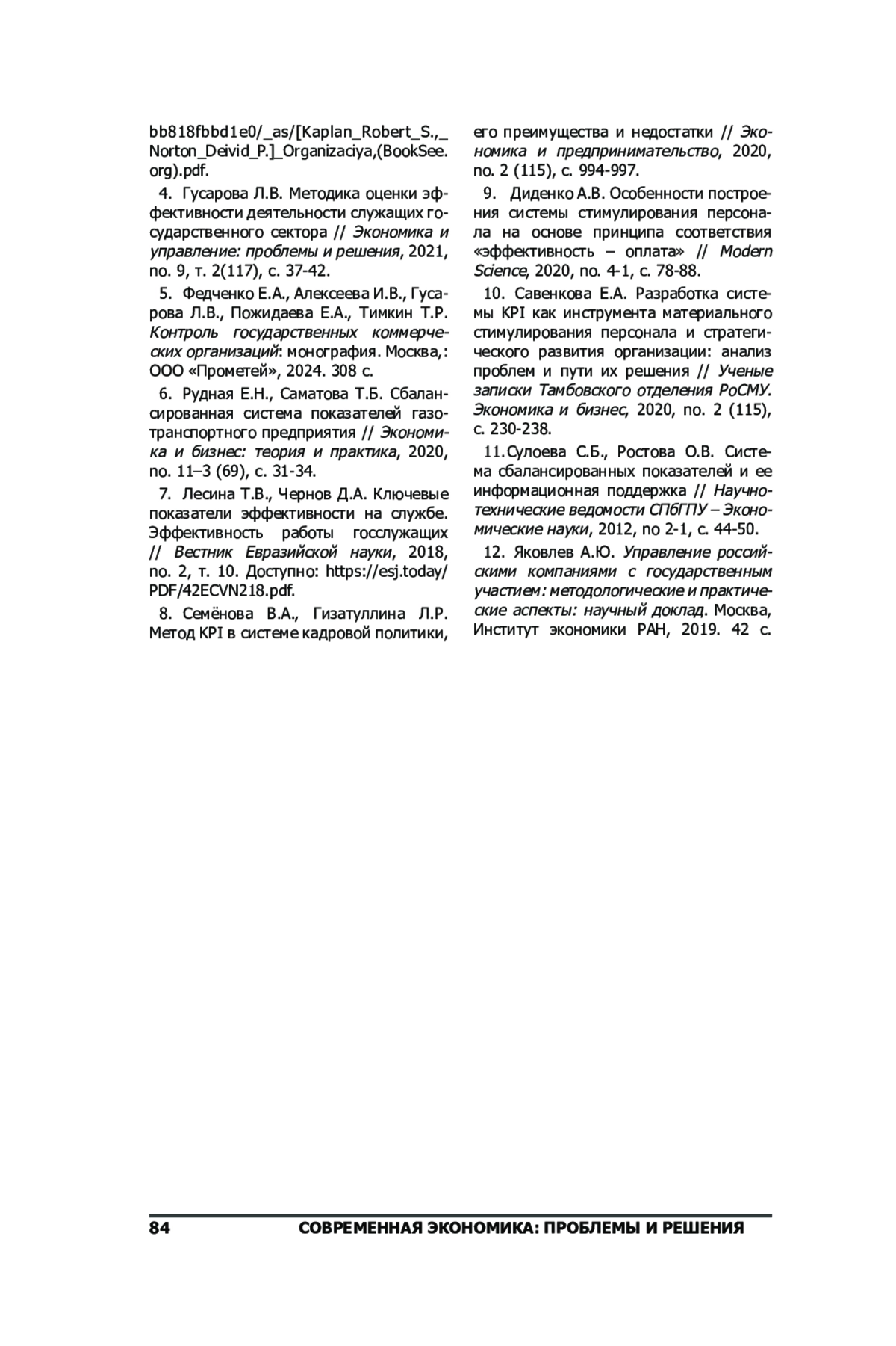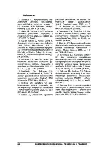 4. Гусарова Л.В. Методика оценки эффективности деятельности служащих государственного сектора // Экономика и управление: проблемы и решения, 2021, no. 9, т. 2(117), с. 37-42.