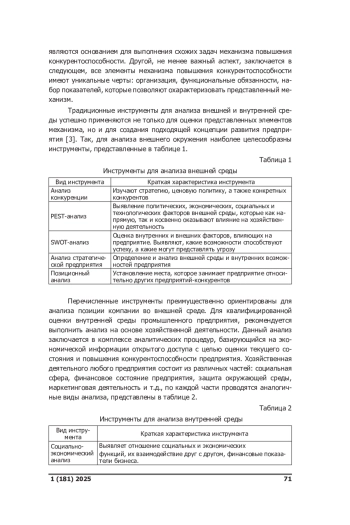 Выбор определенного набора инструментов прежде всего определяется фундаментальными основами управления конкурентоспособностью предприятия и заключается в многогранности целей, на которые должно быть направлено управляющее воздействие – это цели, выбор, ресурсы и эффективность, персонал, миссия. Каждый из этих аспектов требует внимательного анализа и оценки для формирования стратегических задач и планов, так как динамично меняющиеся условия внешней среды создают дополнительные риски реализации целевых показателей промышленного предприятия. Для определения целей и задач при форматировании системы управления конкурентоспособностью необходимо учитывать эту высокую степень неопределенности, которая возникает в том числе из-за отсутствия доступа ко всей имеющейся информации.