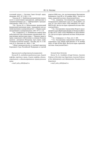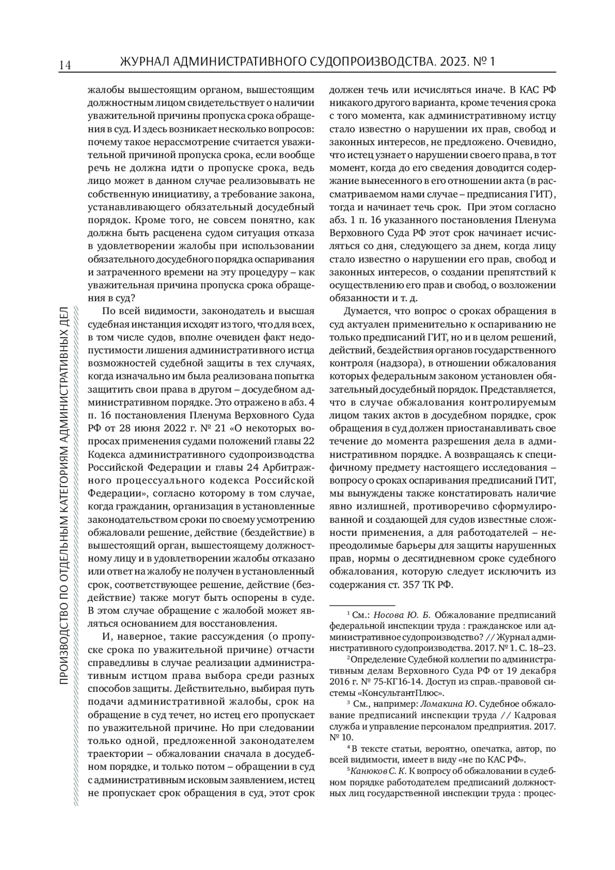НОСОВА Ю. Б. О СРОКАХ ОСПАРИВАНИЯ ПРЕДПИСАНИЙ ГОСУДАРСТВЕННОЙ ИНСПЕКЦИИ ТРУДА // ЖУРНАЛ АДМИНИСТРАТИВНОГО СУДОПРОИЗВОДСТВА. 2023. № 1
