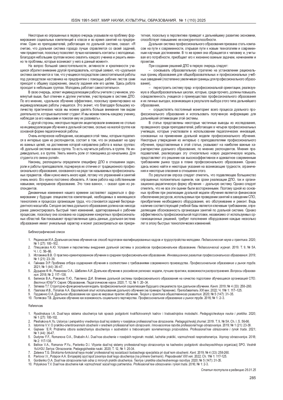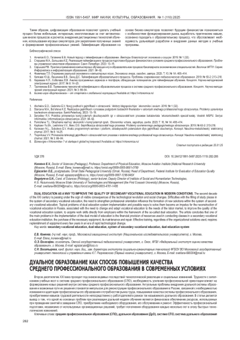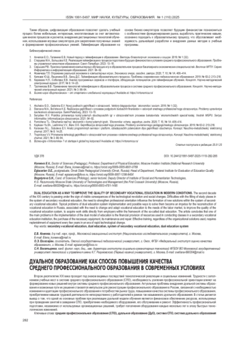 Статья: ДУАЛЬНОЕ ОБРАЗОВАНИЕ КАК СПОСОБ ПОВЫШЕНИЯ КАЧЕСТВА СРЕДНЕГО ПРОФЕССИОНАЛЬНОГО ОБРАЗОВАНИЯ В СОВРЕМЕННЫХ УСЛОВИЯХ (2025)
