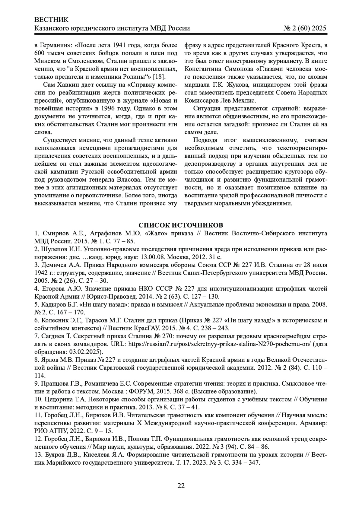 7. Сагдиев Т. Секретный приказ Сталина № 270: почему он разрешал рядовым красноармейцам стрелять в своих командиров. URL: https://russian7.ru/post/sekretnyy-prikaz-stalina-N270-pochemu-on/ (дата обращения: 03.02.2025).