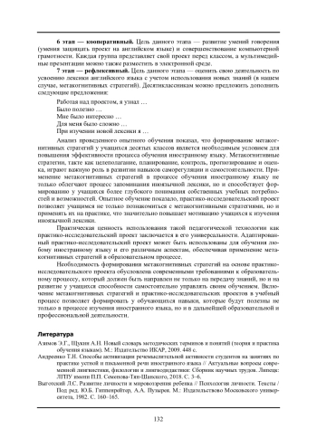 7. Чеснокова Е.В., Корнаухова А.И. Использование практико-исследовательских проектов при обучении второкурсников иностранному языку в педагогическом вузе // Психология образования в поликультурном пространстве. 2023. № 3 (63). С. 97-105. DOI: 10.24888/2073-8439-2023-63-3-97-105 EDN: TMWVXN