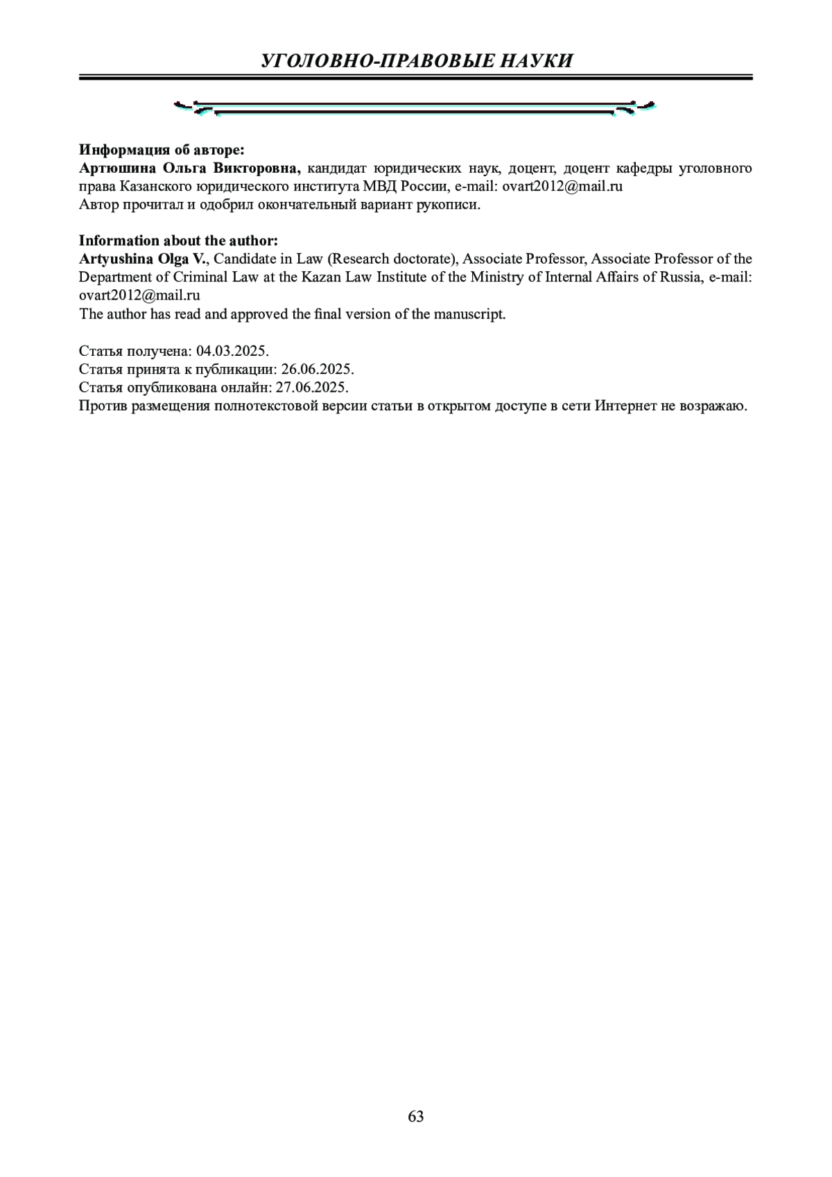 9. Андреев И.В. Теоретико-правовые основы квалификации преступлений: дис. …канд. юрид. наук:12.00.08. Тюмень, 2000. 205 с. EDN: NLRYHR