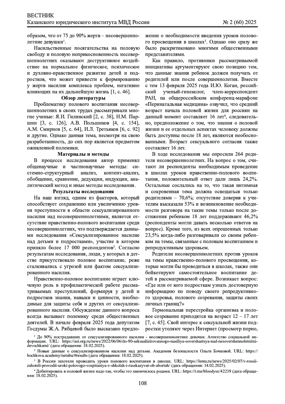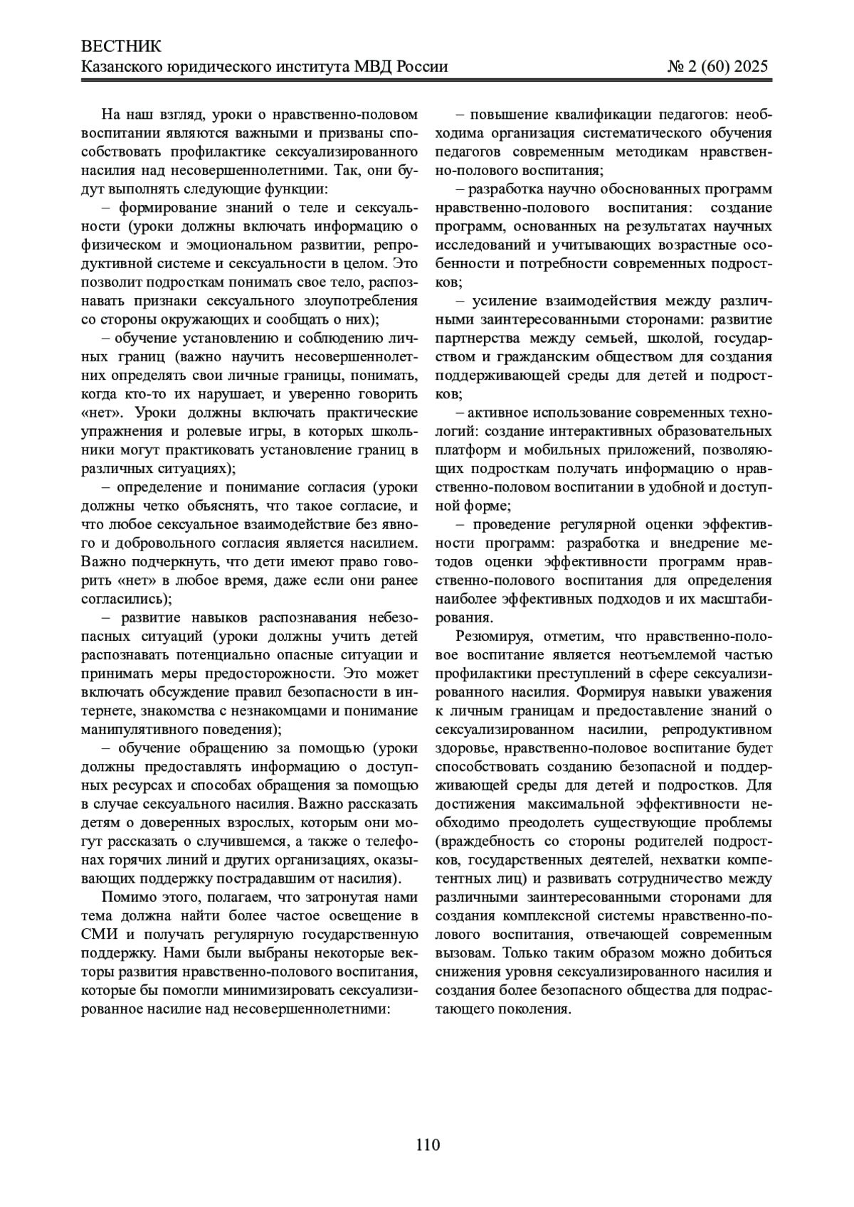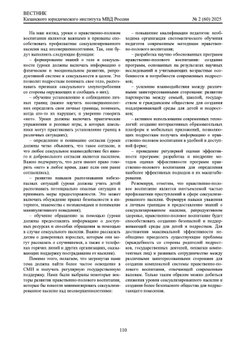 Статья: НРАВСТВЕННО-ПОЛОВОЕ ВОСПИТАНИЕ НЕСОВЕРШЕННОЛЕТНИХ КАК ФОРМА ПРОФИЛАКТИКИ ПРЕСТУПЛЕНИЙ В СФЕРЕ СЕКСУАЛИЗИРОВАННОГО НАСИЛИЯ (2025)
