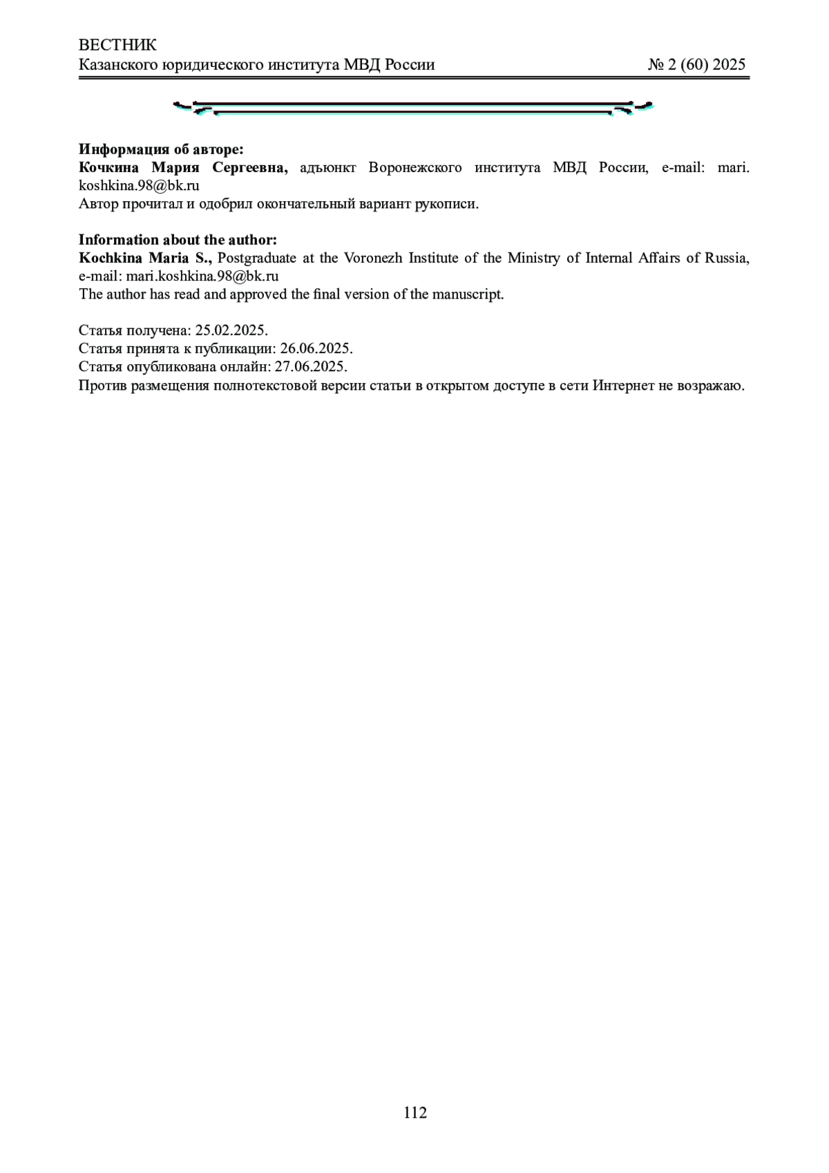 Журнал: ВЕСТНИК КАЗАНСКОГО ЮРИДИЧЕСКОГО ИНСТИТУТА МВД РОССИИ